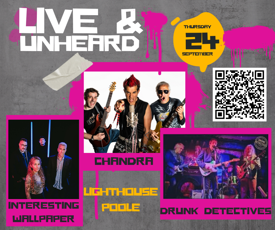 This month features a stunning original music line up featuring Drunk Detectives (Dorset), Interesting Wallpaper (South Coast) and Chandra (Bristol/Gloucester/Cheltenham). Tickets available here https://www.lighthousepoole.co.uk/event/live-and-unheard-september-26/